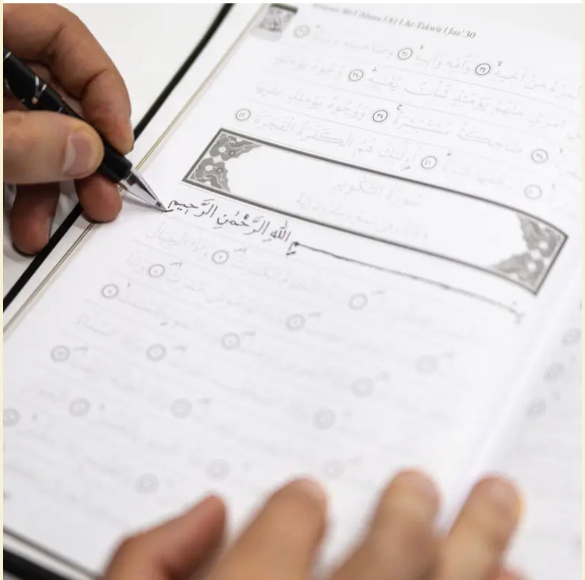 Coran en arabe grand format avec lettres claires à retracer sur chaque page, fourni avec un stylo gommable pour corriger et recommencer facilement. Idéal pour accompagner l’apprentissage de l’écriture et la mémorisation.